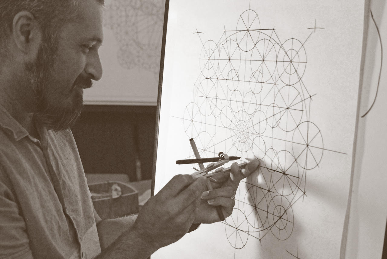 Contemporary interpretation of the Al Atterine pattern displaying the grid and construction lines.
